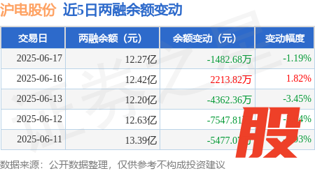 本站消息,6月17日,沪电股份(002463)融资买入1.63亿元,融资偿还1.78亿元中财所,融资净卖出1500.99万元,融资余额12.2亿元。