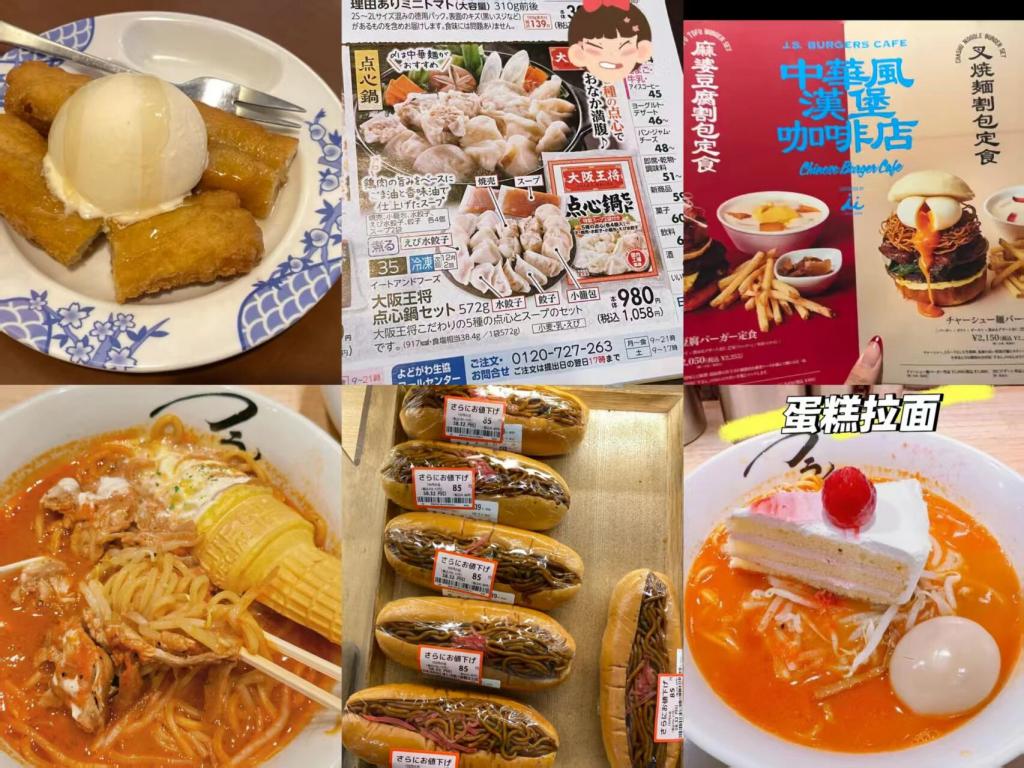 油条冰淇淋、蛋糕拉面、叉烧干脆面汉堡、生姜饺子、炒面三明治 ...... 各种新奇组合层出不穷,深受日本消费者喜爱。