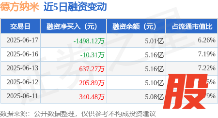 本站消息,6月17日,德方纳米(300769)融资买入6127.35万元,融资偿还7625.46万元金控配资·,融资净卖出1498.12万元,融资余额5.01亿元。