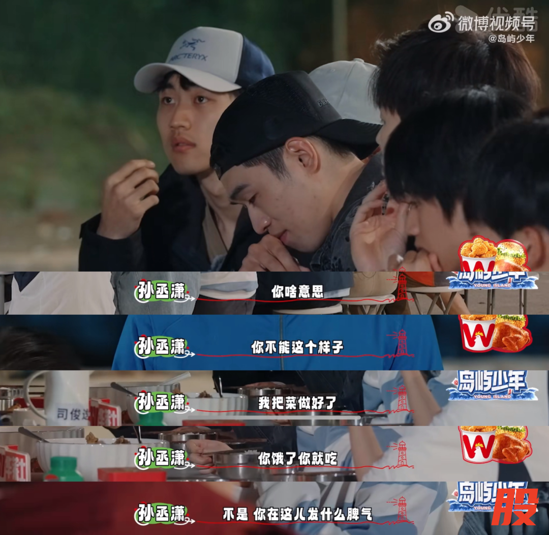 孙丞潇没有忍气吞声,也没有暴跳如雷,而是直视对方,连问三句:“你什么意思?你饿了就先吃。你发什么脾气?”