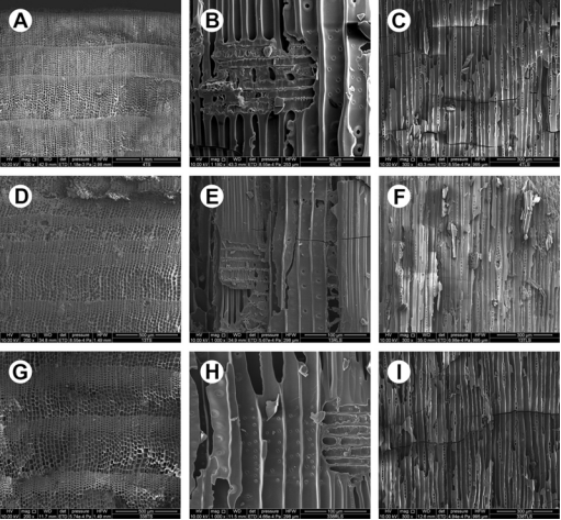 △冷杉属(A-C)、云杉属(D-F)及铁杉属(G-I)的显微构造