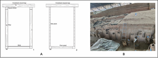 △陪葬坑过洞主要木质框架结构示意图(A1:兵马俑坑;A2:K9901及K9801;B:兵马俑一号坑内炭化木质建筑结构)中鑫优配