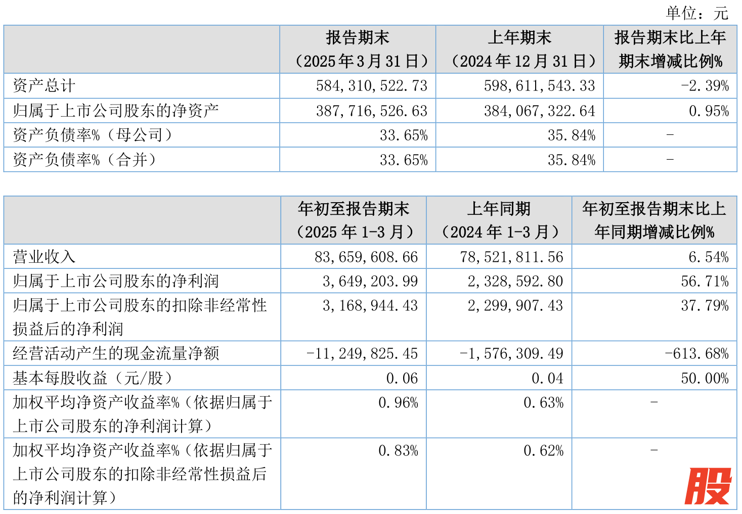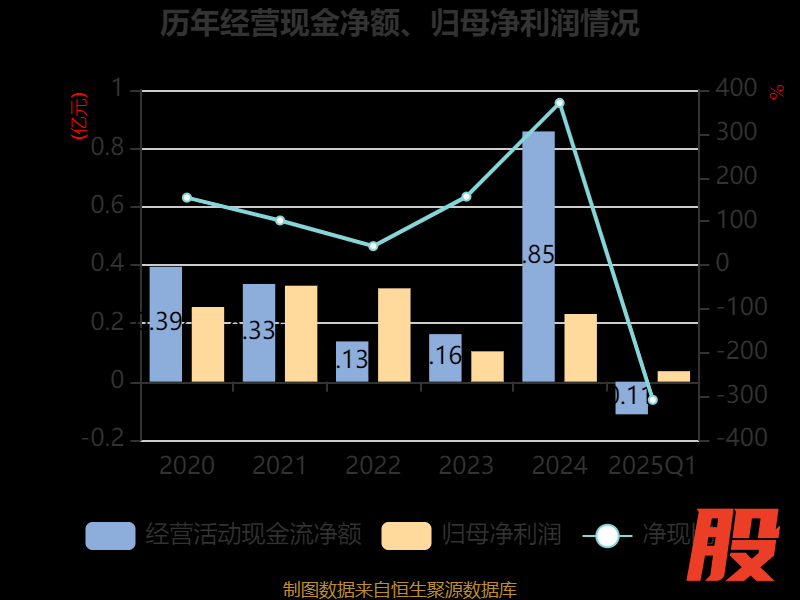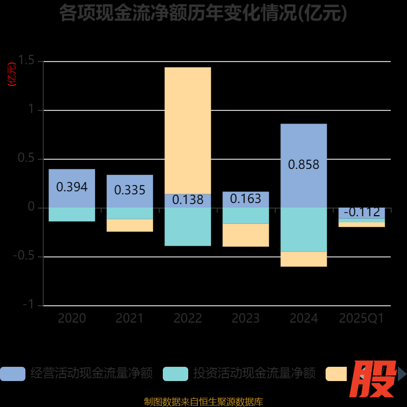 截至2025年一季度末,公司经营活动现金流净额为-1124.98万元,同比减少967.35万元;筹资活动现金流净额-478.73万元,同比减少200万元;投资活动现金流净额-390.15万元,上年同期为-820.23万元。
